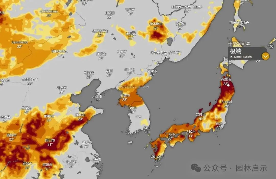 日本也不例外,從南部的鹿兒島到北部的青森,普遍降水偏少。青森市已被列為極端乾旱地區。