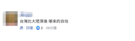 對此,有島內網民在台媒相關報道評論區留言表示,“台灣比大陸落後,哪來的自信”。