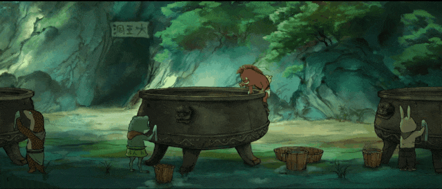 電影一開始,小豬妖為了進大王洞,跟着小蛤蟆去給大王洗鍋。