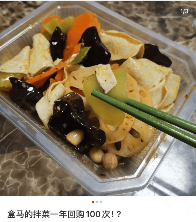 (社交媒體上用户分享對盒馬素拌菜的喜愛)