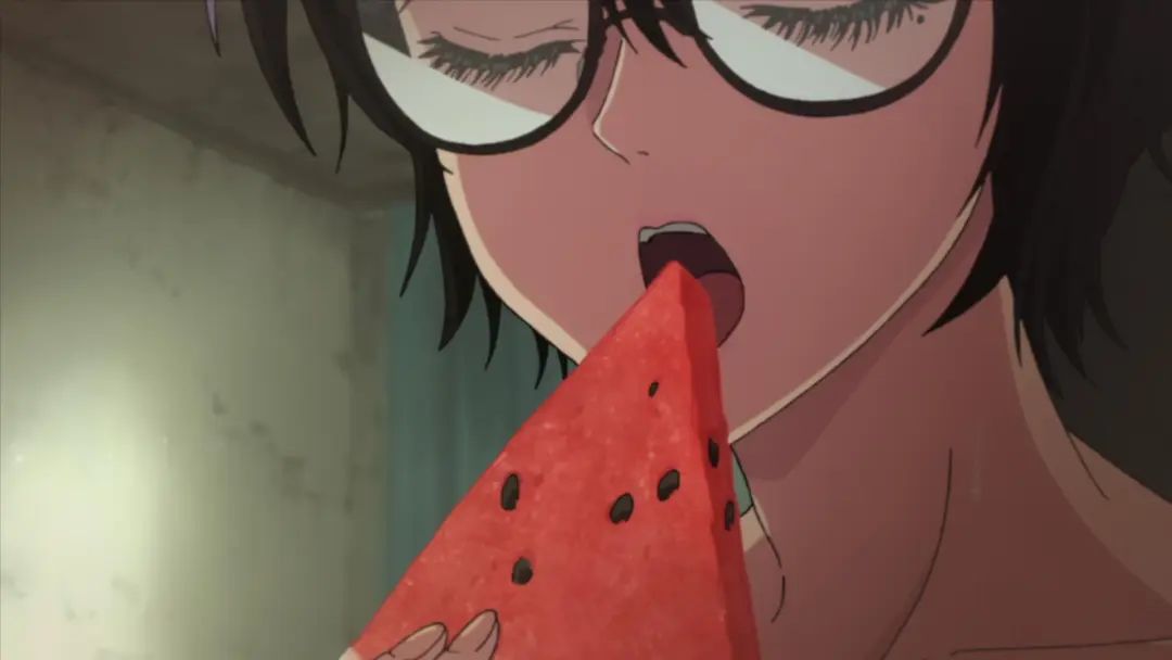 按下鬧鐘,戴上眼鏡,女人切好西瓜。