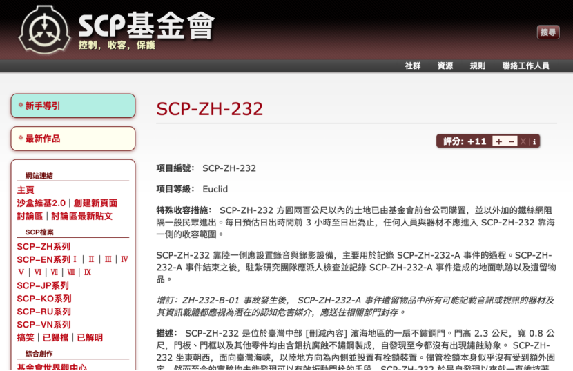 SCP是個很有意思的共創虛擬項目,從2007年就開始出現,後來發展出獨立的網站。它有一個核心設定,就是存在一個神秘機構“SCP基金會”,專門發現、研究和“收容”各種超自然的、異常的事物。