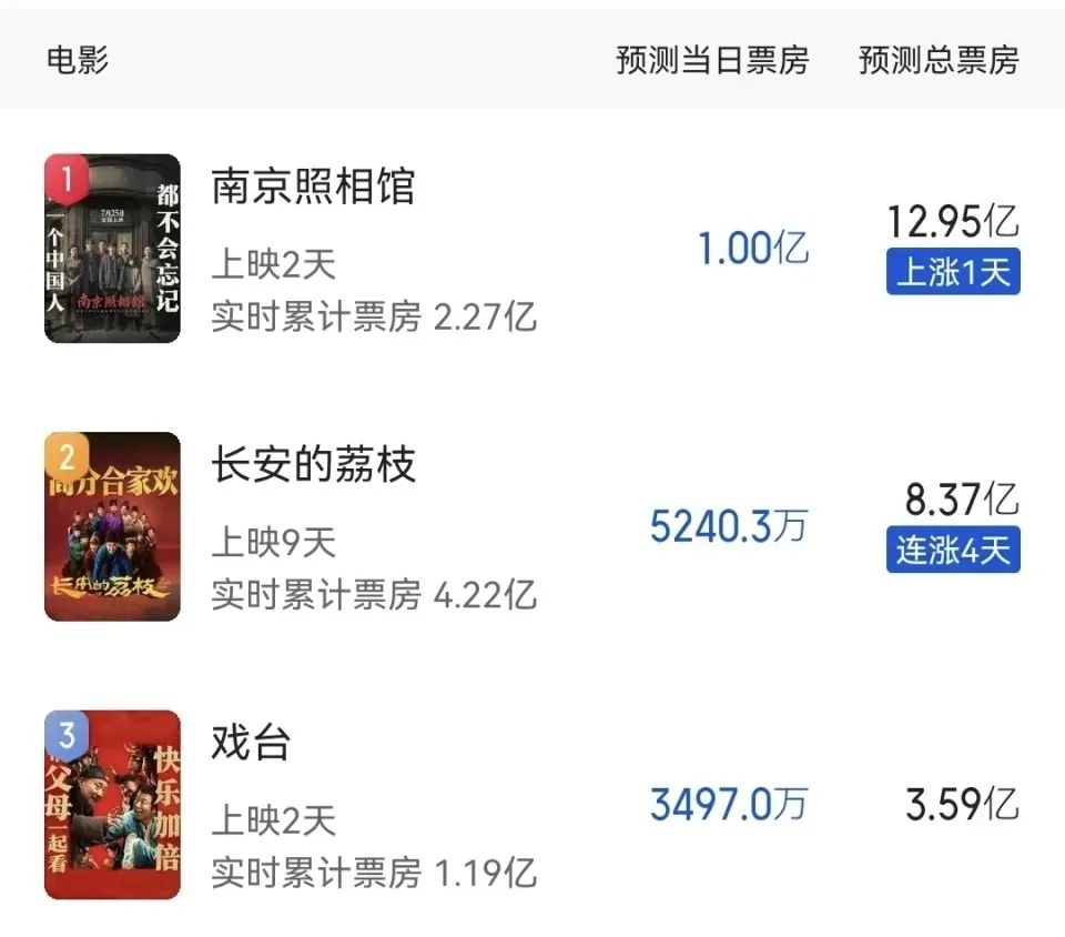 從7月25日上映以來,《南京照相館》就是票房首位甚至多次逆跌,排片從21.5%一路攀升到40.8%,把5億以上《長安的荔枝》、《侏羅紀世界:重生》都遠遠甩在了身後。