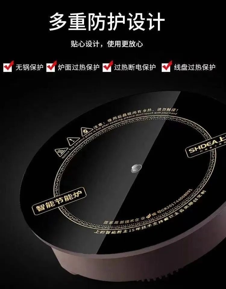 與普通電磁爐的區別是,上的這款智能節能爐,中心面板上有個高敏傳感器。然而,小小的傳感器,卻有大作用,優勢有三,一是省電,二是省人力,三是烹出最佳味道。