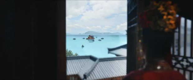 畫面佈景古典精緻,雕樑畫棟。燈光上燭光窗影,綠影婆娑。