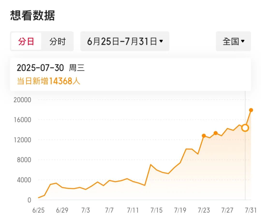 在原定上映日期之前,從兩大票務平台上看,觀眾的想看人次標記合計已近500萬。