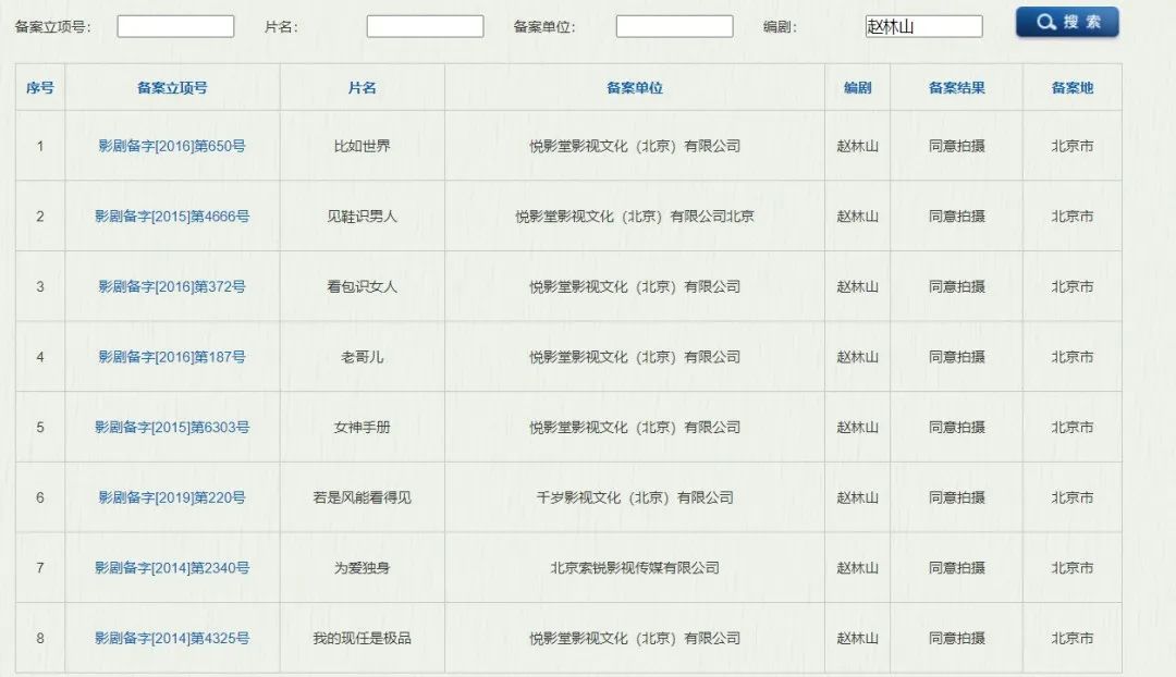 電影局官網上依然查不到備案信息,並且就算按照導演兼編劇的趙林山來搜索,仍然是查無此片。