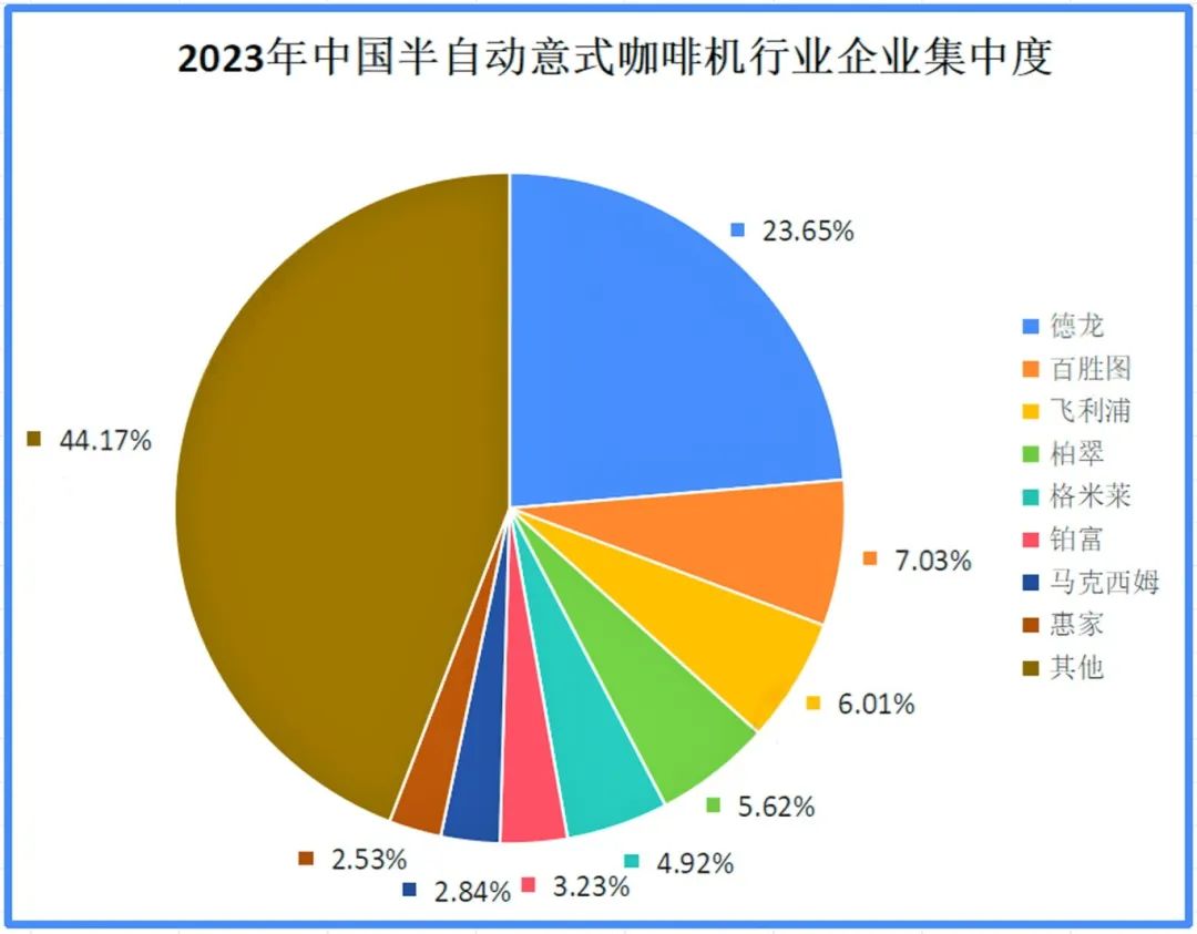 在高端半自動意式咖啡機行業中,百勝圖(意大利品牌,已被中國廠家新寶電器收購)以7.03%的佔比位居第二,僅次於行業主導的德龍。