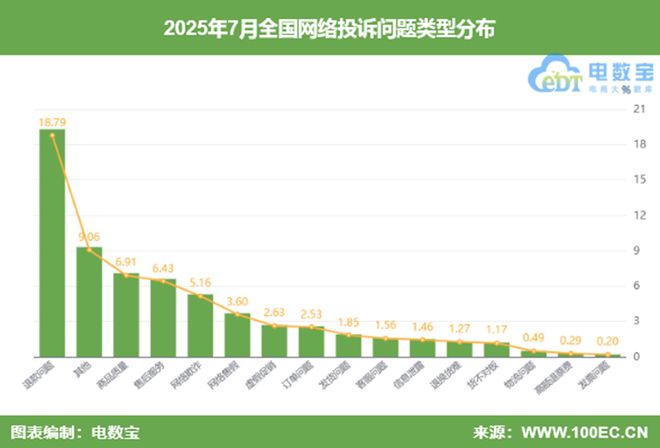 在此背景下, 8月5日,依據網絡消費糾紛調解平台“電訴寶”7月所受理的全國互聯網消費平台糾紛大量案例數據,分析7月電商平台用户投訴數據,發佈《2025年7月中國電子商務用户體驗與投訴數據報告》以窺見當前電商平台消費者困境。