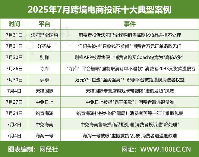 四、沃爾瑪全球購、洋碼頭、別樣等10家平台入選跨境電商典型投訴案例