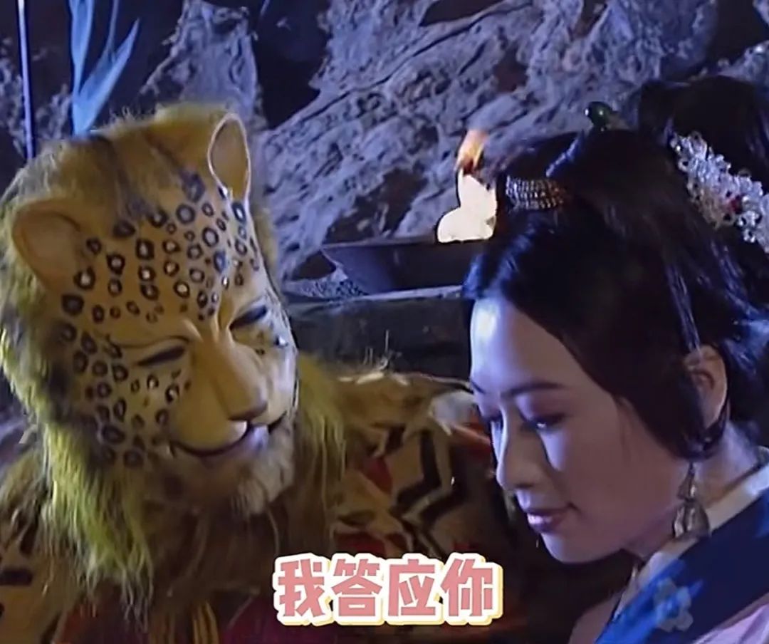 事實上,類似的“萌化處理”還見於同劇的豹子精、獅子精、白象精,都有一種萌萌噠的俏皮感,讓人根本想不出他們平日裏是飲血的妖怪、啖肉的野獸。豹子精更是對搶來的農村媳婦規規矩矩,對綁來的聖僧恭恭敬敬,由此還得了不少互聯網迷妹。