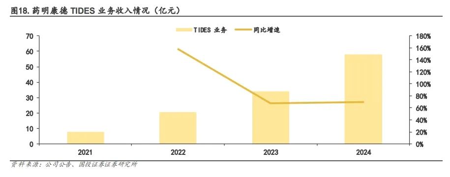 也就是説,僅這一項業務就貢獻了公司總營收的近四分之一(約24.2%),而且幾乎貢獻了全部的收入增量。同時,TIDES業務的在手訂單同比增長48.8%,這也就預示着增長勢頭仍在延續。而據藥明康德預計,TIDES業務全年增長幅度可能在80%以上。