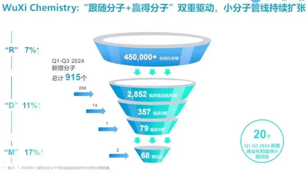 在《節點財經》看來,藥明康德的CRDMO模式,本質上是一個一體化、端到端的“漏斗式”業務模型。 它無縫銜接了新藥研發從前端的藥物發現與研究,到中端的工藝開發,再到後端商業化生產的全過程。其精髓在於“跟隨並贏得分子”雙戰略,創新藥物分子得以從研發前端源源不斷地流向後端,並在整個產業鏈中逐級加速沉澱。