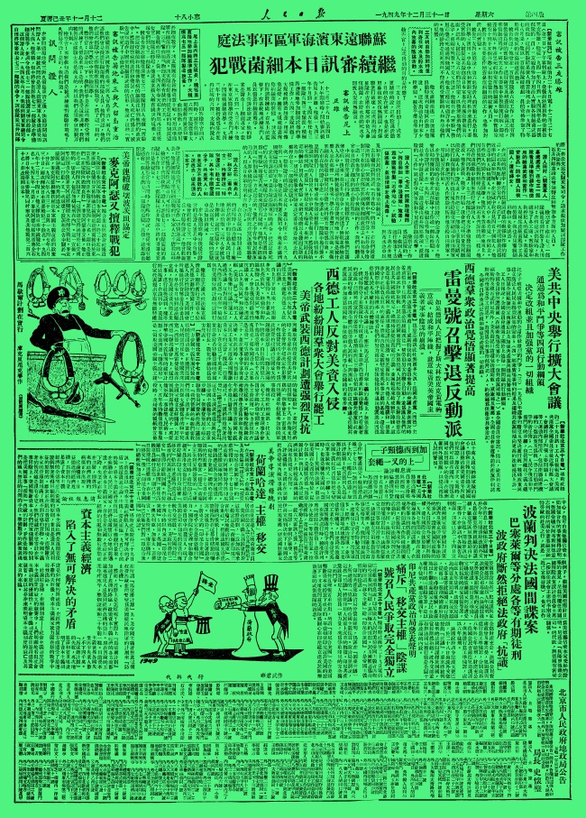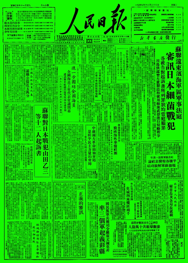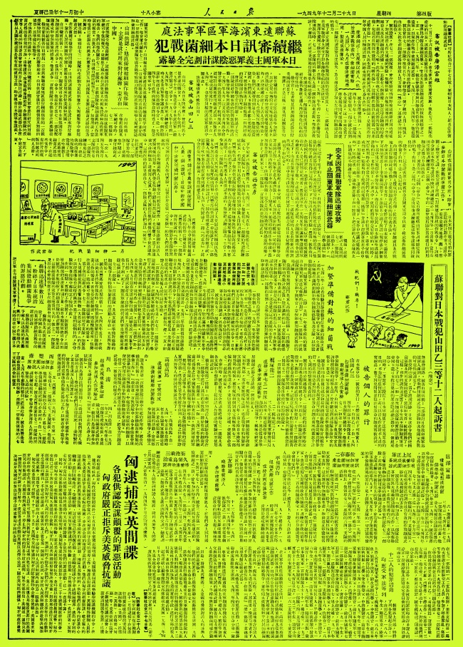 《人民日報》連載蘇聯遠東濱海軍區軍事法庭審訊日本細菌戰犯的相關報道