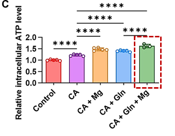 當細胞內接收到檸檬酸、谷氨醯胺和鎂離子這三種“信號分子”時,它們會共同作用,提高細胞內部的鈣離子濃度。緊接着,升高的鈣離子會激活CaMKK2,從而直接激活AMPK通路。