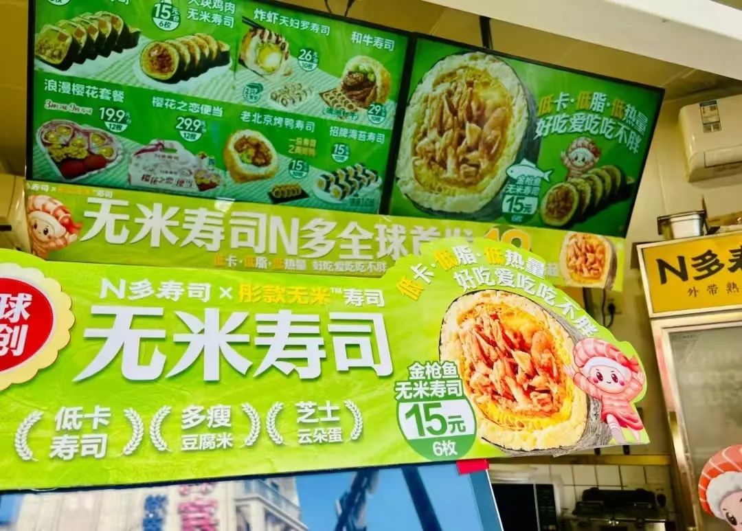 2020年,N多壽司開了國內首家壽司類博物館,館內有一面“萬種壽司牆”,可見在產品創新上下過多大心血。近些年人們關注健康飲食,N多壽司也是投其所好,比如開發出了“無米壽司”,主打一個低卡低脂。