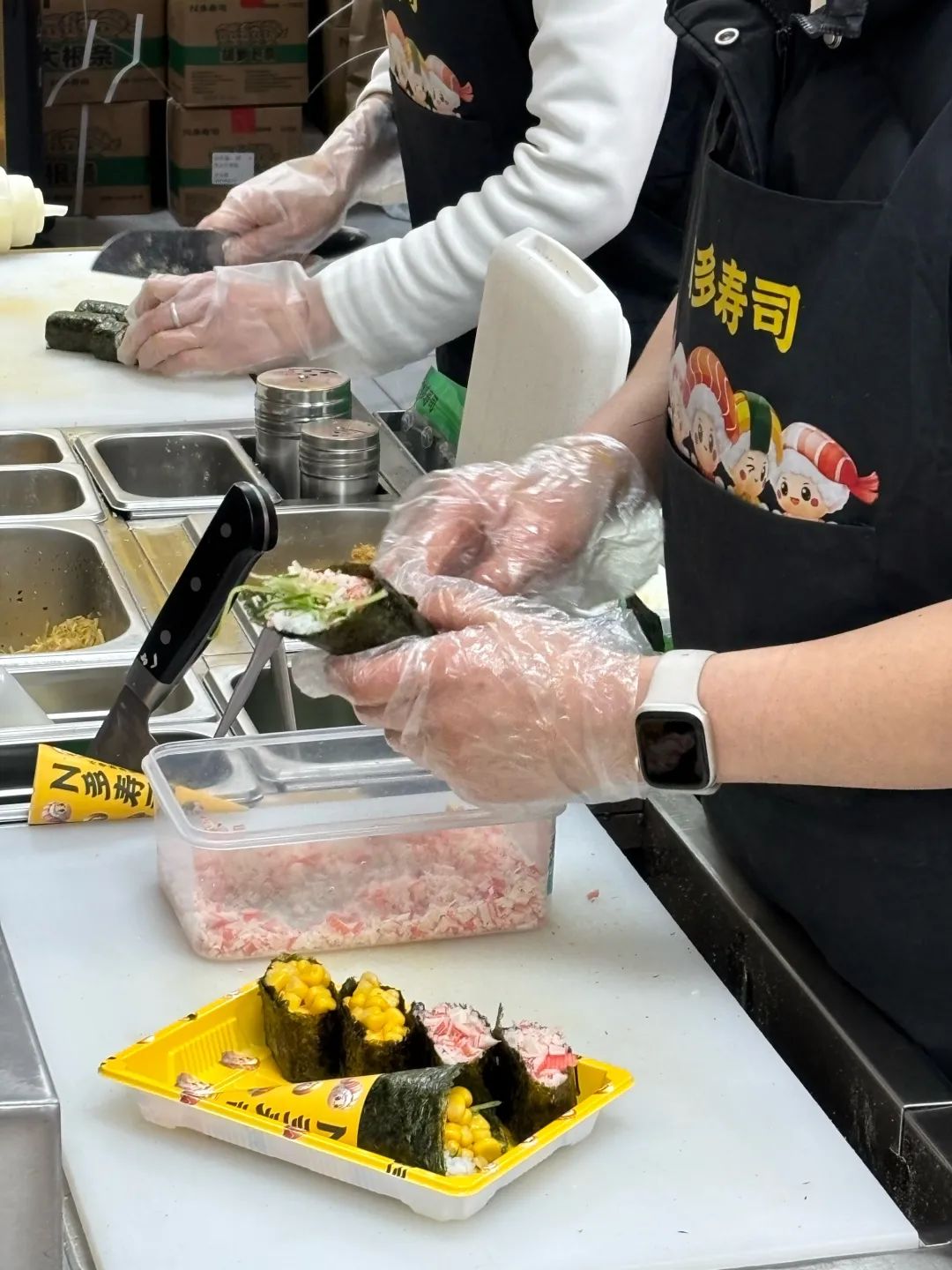 為了搞清楚狀況,他開始請往來的顧客免費試吃,並提出修改意見,“當時我們擺攤的點旁邊就是中醫院,我們就每個小盒裏放兩片壽司,裝了一大兜,把中醫院每層護士站全發了個遍。”