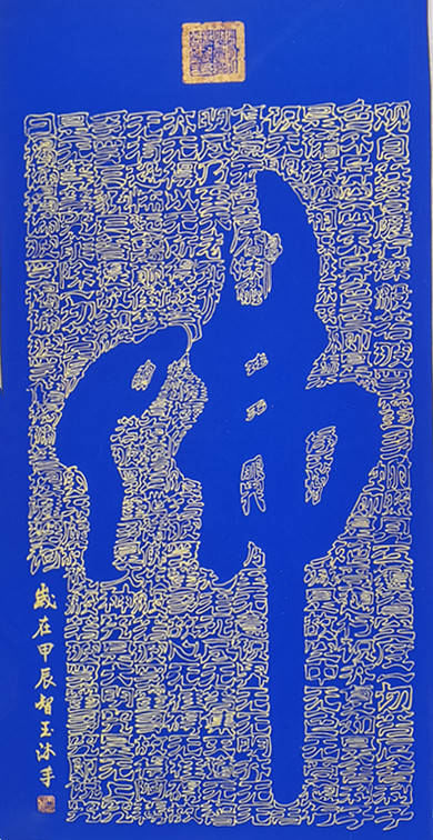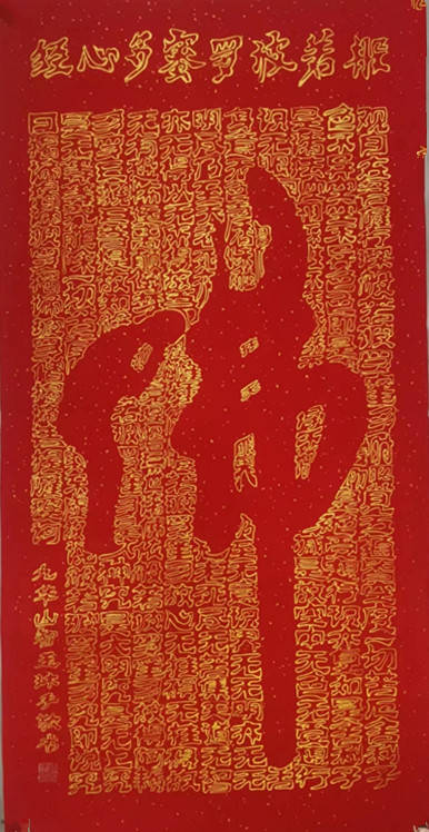 智玉居士(王玉海) 書法家,2000年畢業於中國美術學院書法系,自幼八歲受家庭影響開始習字筆耕不輟,真草隸篆皆有所涉獵。對傳統文化中古文字情有獨鍾研習數十載,作品有《百壽全圖》系列、《百福圖》系列、《平安圖》系列等等。今天來介紹一下他早些年創作的一副精品作品《鏤空心經》