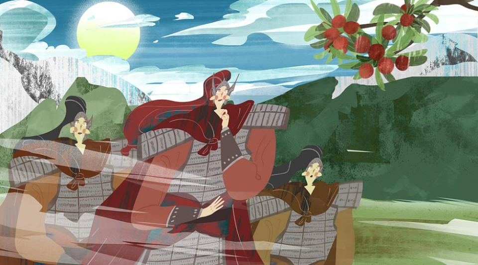 除此之外,這些梅子還是穿越千年的“精神VC片”,是刻在中華民族記憶裏的“領導畫餅”鼻祖級道具!指向的是那個讓無數打工人、行軍將士“膝蓋中箭”的經典橋段——望梅止渴。