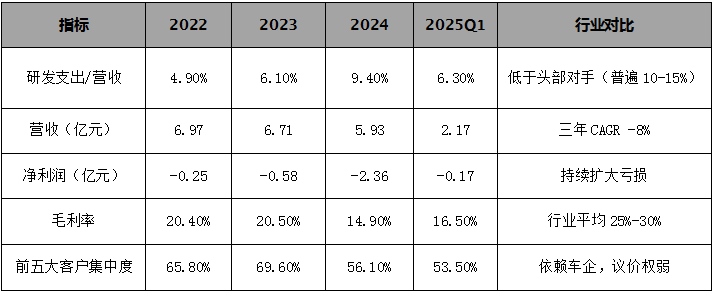 客户依賴度高:車企客户佔比過半,面臨降價壓力(2024年毛利率暴跌5.6pct)。