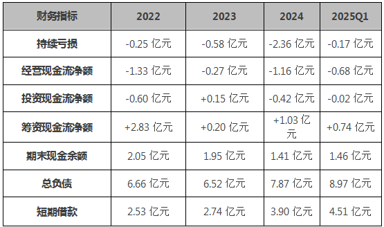 債務攀升:短期借款2025Q1達4.51億元,疊加淨流動負債8150萬元,償債壓力巨大。
