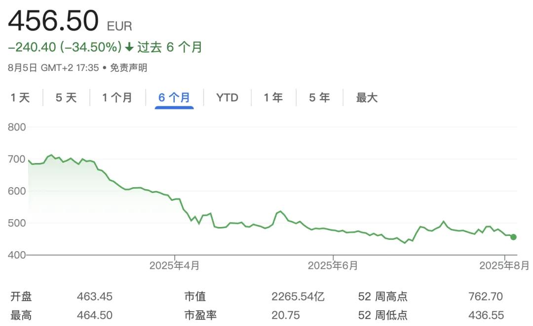 開雲集團2025年第二季度營收為37億歐元,同比下降15%,未達市場預期。其上半年總營收同比下跌16%,淨利潤更是大跌46%。作為集團收入支柱的Gucci第二季度營收同比大跌26%,這已是Gucci連續6個季度銷售下滑。YSL二季度營收則同比下降13%。過去兩年內,開雲股價已累計下跌近60%。