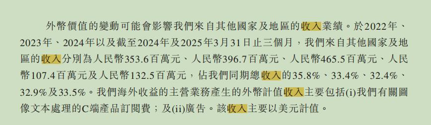 不過,合合信息的主力營收並未在海外,且近三年海外營收佔比呈下降趨勢,國內市場仍然是合合信息最重要的營收地。招股書數據顯示,2022年,合合信息海外收入為人民幣3.5億元,佔同期總營收的35.8%;而到了2024年,這一比例下降至32.4%。