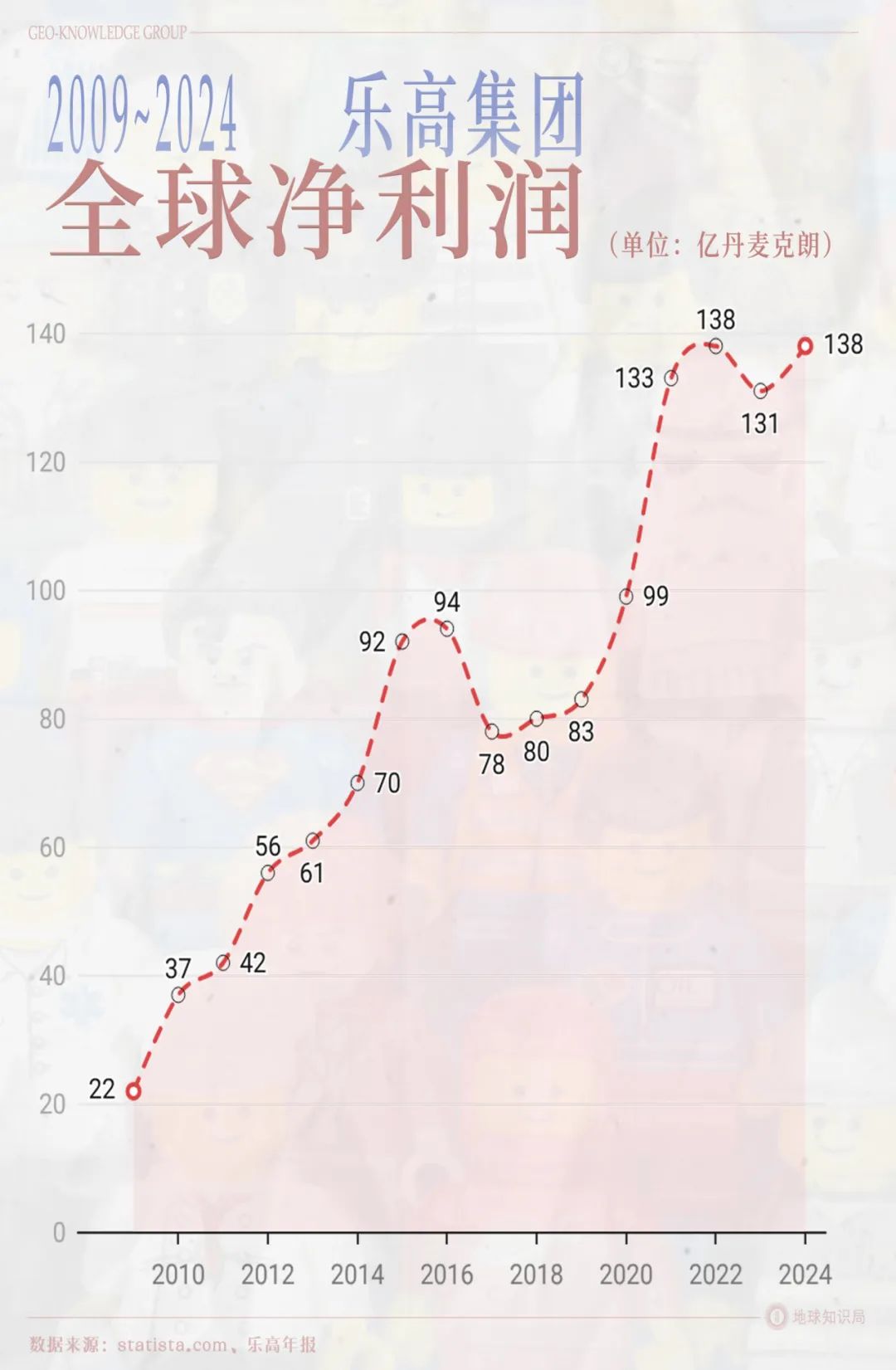 比如樂高,這幾年的營收就跟開了印鈔機一般:2024年全年,樂高營收增長13%,來到743億丹麥克朗(約合人民幣831億),淨利潤則高達138億丹麥克朗(約合人民幣154億),雙雙創歷史新高。