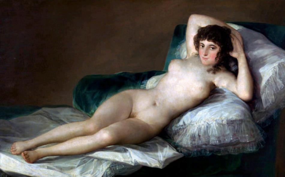 戈雅於 1795 至 1800 年間創作的《裸體的瑪哈》,描繪了側卧在深綠色寢具上的年輕裸女,受意大利留學經歷及委拉斯貴支作品影響。因畫中裸體,戈雅曾被西班牙宗教裁判所傳喚,畫作也遭沒收雪藏,卻成為貴族地下收藏的搶手貨。