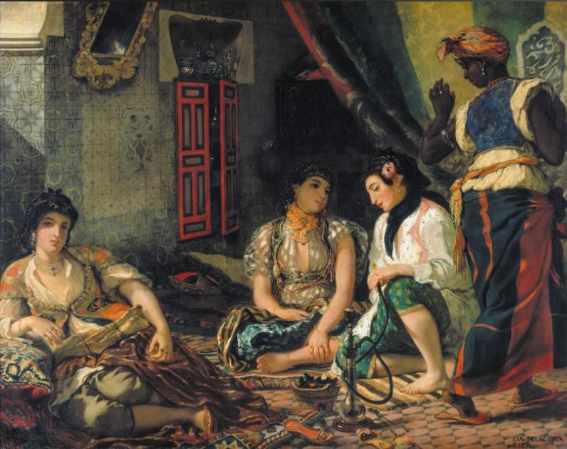 19 世紀歐洲擴張期間,“土耳其宮女”“東方浴女” 題材井噴。安格爾的《大宮女》把奧斯曼後宮女子畫成脊柱多三節的白皙裸女;德拉克洛瓦的《阿爾及爾婦女》將北非閨閣改造成法式沙龍。