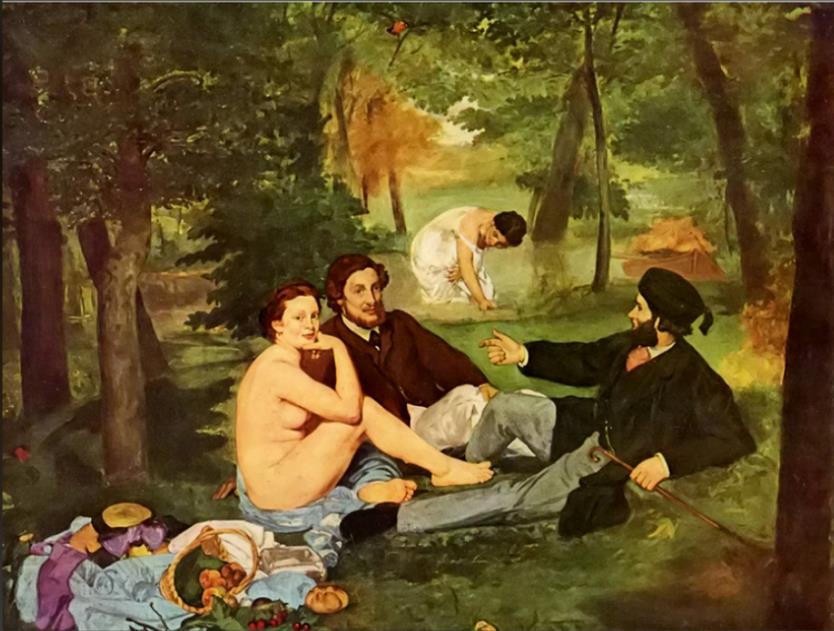 馬奈的《草地上的午餐》在 1863 年沙龍落選展一經展出,便被斥為 “有傷風化”。該畫打破傳統,將裸女與衣冠楚楚的男子置於巴黎常見的草地午餐場景中,以創新的畫法和構圖挑戰了當時的古典繪畫風格。