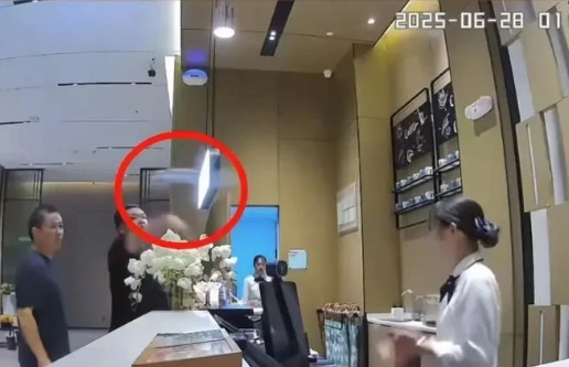 在廣州某酒店,一男子欲借傘,被告知需支付50元押金後,不僅拒付,還與同行者輪番施壓,甚至在索要礦泉水後,將水瓶砸向酒店前台員工,致使兩名員工受傷。