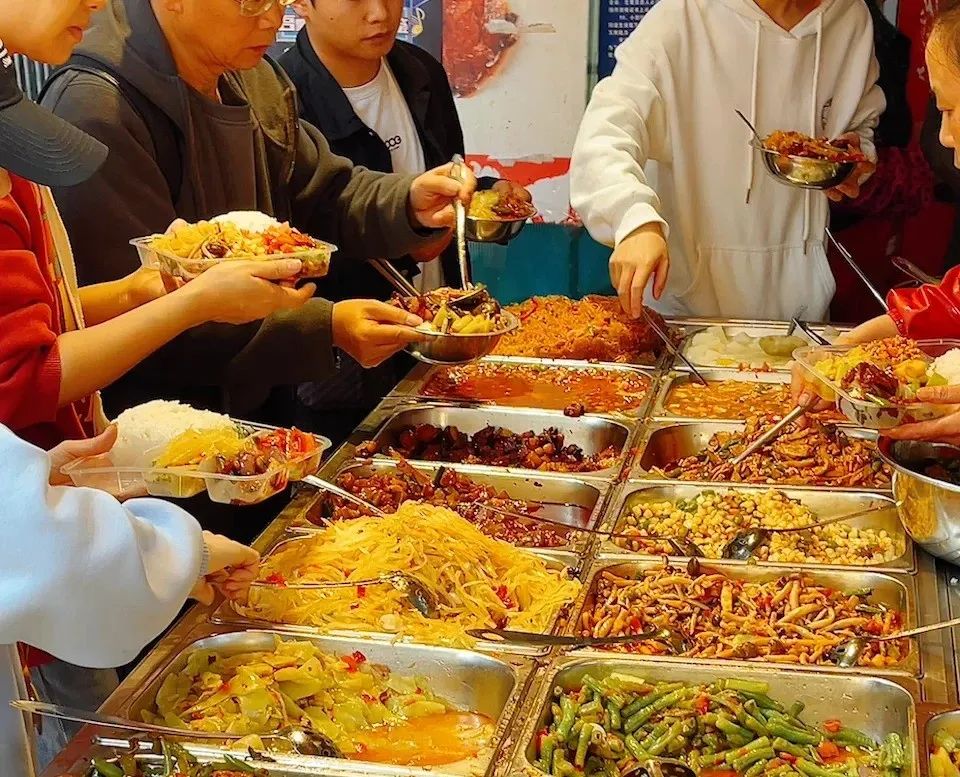 二是出餐快的小食堂,賣些米麪盒飯,人均二三十,吃飽還能吃好,20分鐘之內解決戰鬥,效率高、翻枱快,打工人的心和胃都被這口便捷熱乎的飯拿捏得死死的。
