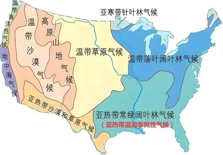 這個地形最大的問題,是温度會出現劇烈的升降。例如大漂亮的得克薩斯州,緯度和我國的浙江相近。這裏在寒流到來後,最低氣温居然會達到零下18度!甚至在最南面的佛羅里達邁阿密,1977年也曾出現過零下2度的低温。
