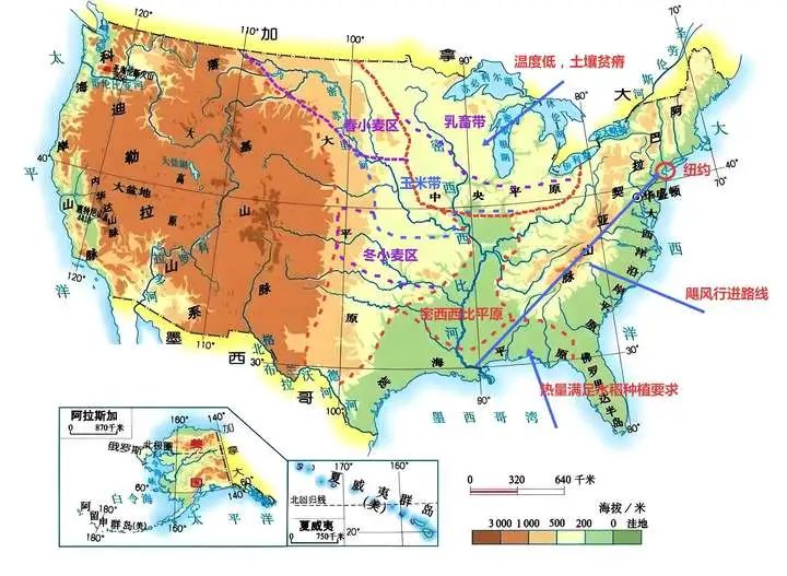 第二,從墨西哥灣起源的大西洋颶風,砍掉了從密西西比河出海口到東北方向的紐約這條直線以東以南的廣大地區,其中就包括大西洋沿岸平原。這裏什麼糧食也種不了了。