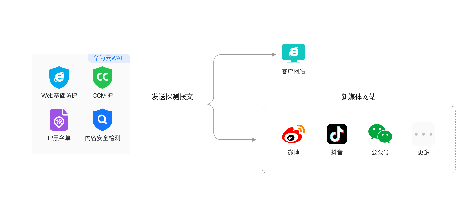華為雲對應的產品是Web應用防火牆WAF,直面三大典型Web安全防護場景,精準識別並阻斷各類應用層攻擊。