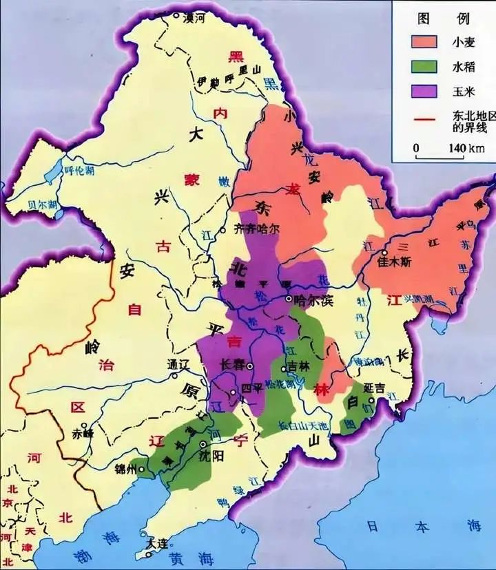 也許人在莫斯科的冬天居住着舒服一點,但對於作物生產卻不是個好事情。事實是莫斯科以北只能種植春小麥,而且規模很小。而看起來更冷的東北大部分地區卻能種植水稻、玉米、小麥這些穀物,是我國的糧食主產區。