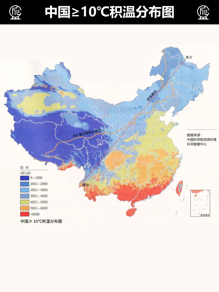而我國除了青藏高原等極少數地區,大部分地區全年積温都大於2000度。其中,我國華北等廣大地區,全年積温大於4000度。