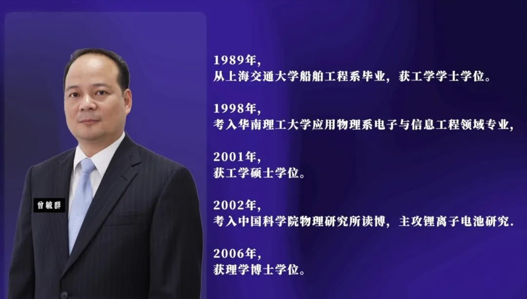 這場勝利不是曾毓羣一人獨力完成,但對他而言,無疑是一場深刻的歷練。面對尚不熟悉的技術領域,他表現出極強的學習力和判斷力,這種 “不懂但敢闖” 的精神,為他日後的領導風格奠定了雛形。此後幾年中,曾毓羣通過一邊工作、一邊勤勉學習,相繼獲得華南理工大學應用物理系碩士學位、中國科學院物理研究所博士學位,主攻鋰離子電池研究,愣是從一個電池門外漢成為鋰電池專家。
