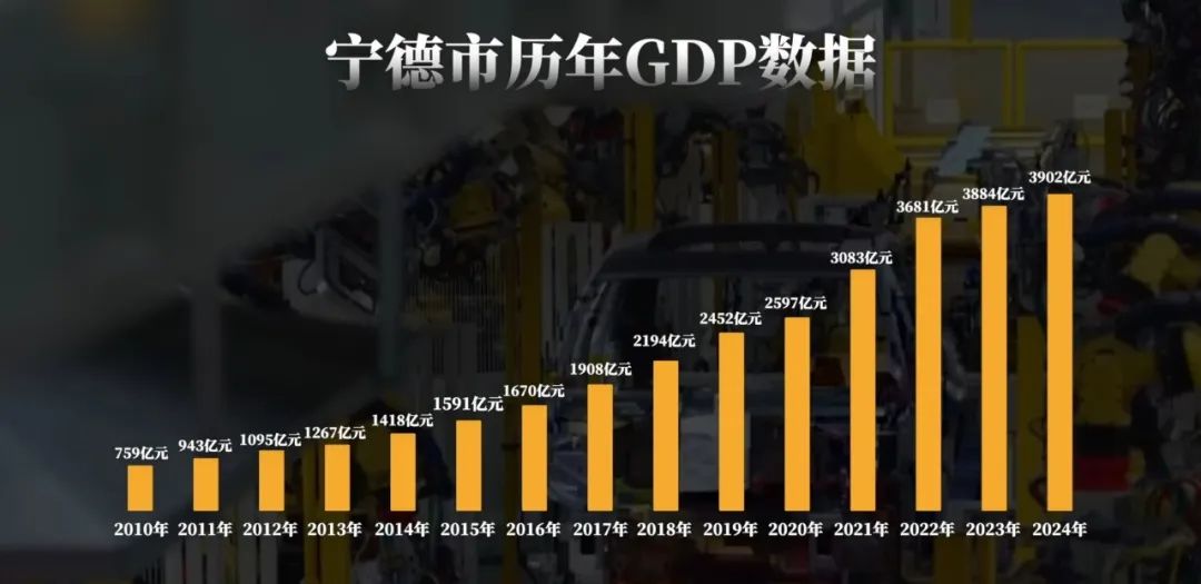 短短十幾年時間,寧德的GDP狂飆到3902億(2024年),足足是2010年的5倍多,不僅躋身全國百強城市,還是 “全球鋰電心臟”,迎接着來自世界各地的客户。