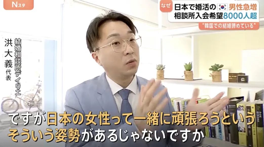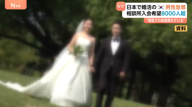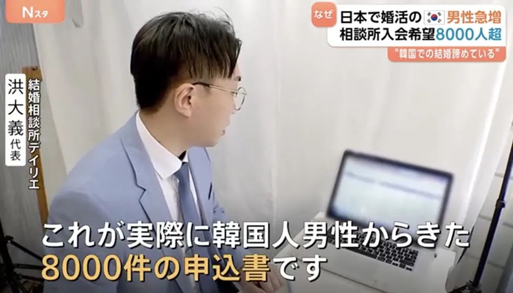 某日本婚介機構的負責人表示,過去主要以日本本國客户為主,而現在來自韓國的諮詢者逐年增加。