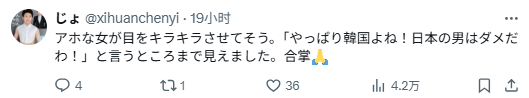我都能想象那些傻女人兩眼放光的樣子:“果然還是韓國好啊!日本男人不行!”合十祈禱。