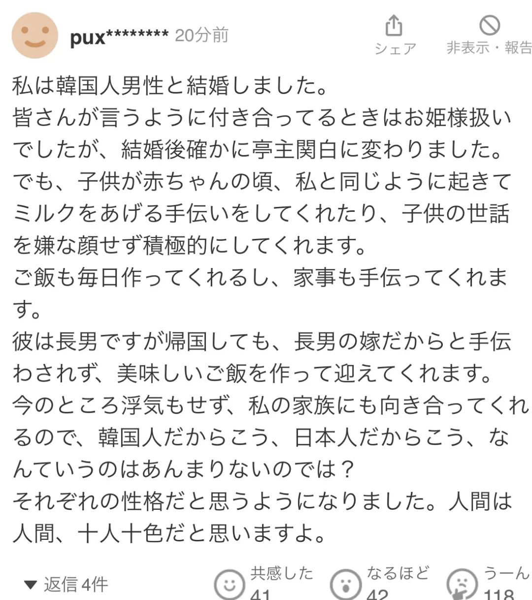 也有和韓國男性結婚的日本網友現身説法。給予了韓男肯定。