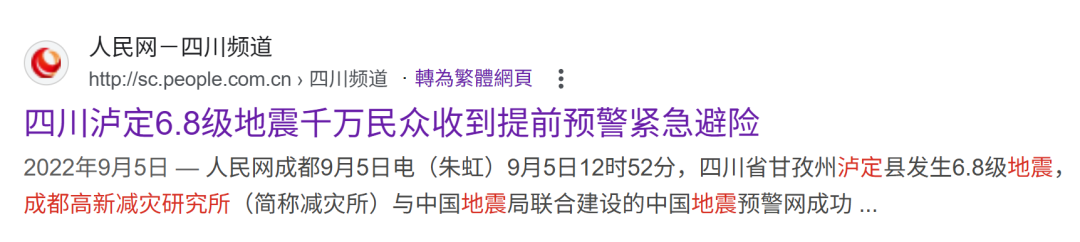 人民網——四川瀘定6.8級地震 千萬民眾收到提前預警緊急避險