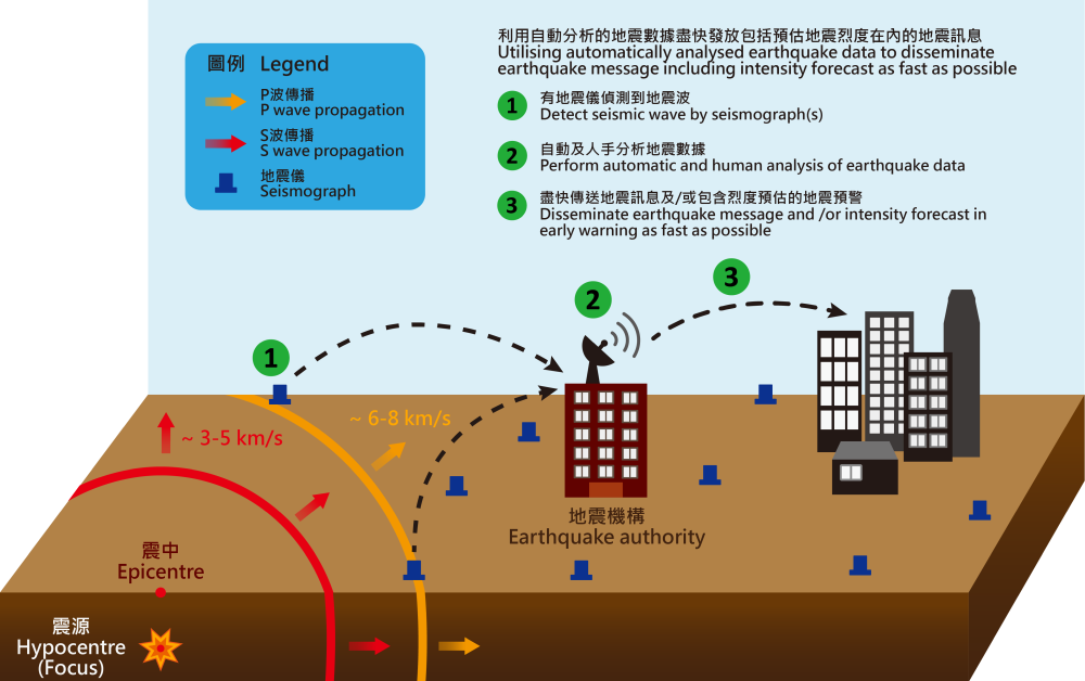 這個系統由一個全自動的預警網絡組成,在國內主要的地震區都設立了密集的地震預警監測儀,在地震發生後,可以提前幾秒到幾十秒向地震波還未到達地區的用户發出警報。