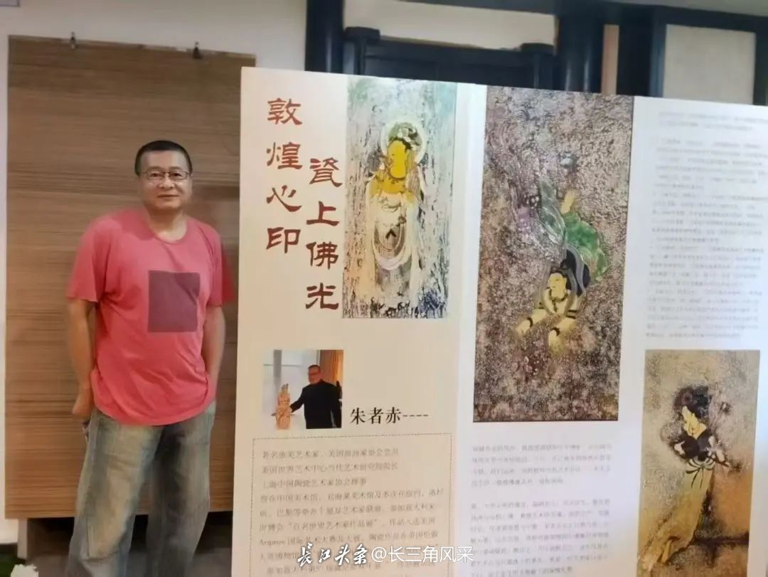 朱者赤的敦煌版畫,竟也勾起了古鎮老人塵封的記憶。一位曾在西北插隊的老者,久久佇立於《絲路駝鈴》前,聲音微顫:“這沙子的顏色,跟我當年在戈壁灘上看到的一模一樣。”原來無論大漠黃沙還是江南煙雨,沉澱於筆端,皆是生活最為樸素而深刻的烙印。