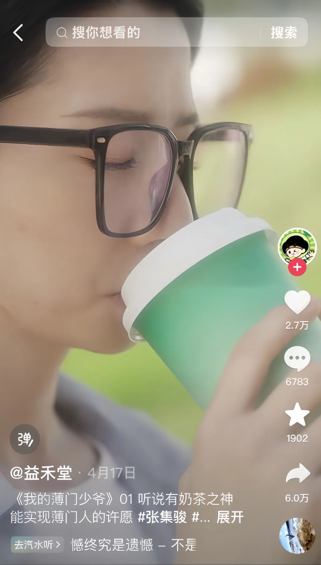 但品牌主導的內容嘗試遭遇了挑戰。2025年益禾堂推出的品牌短劇《我的薄門少爺》,雖然引入了“奶茶神明”等奇幻設定,但因核心劇情是神明幫助女孩揭穿渣男,與產品本身及用“薄門”文化關聯較弱,未能有效激發社羣參與,效果有限。