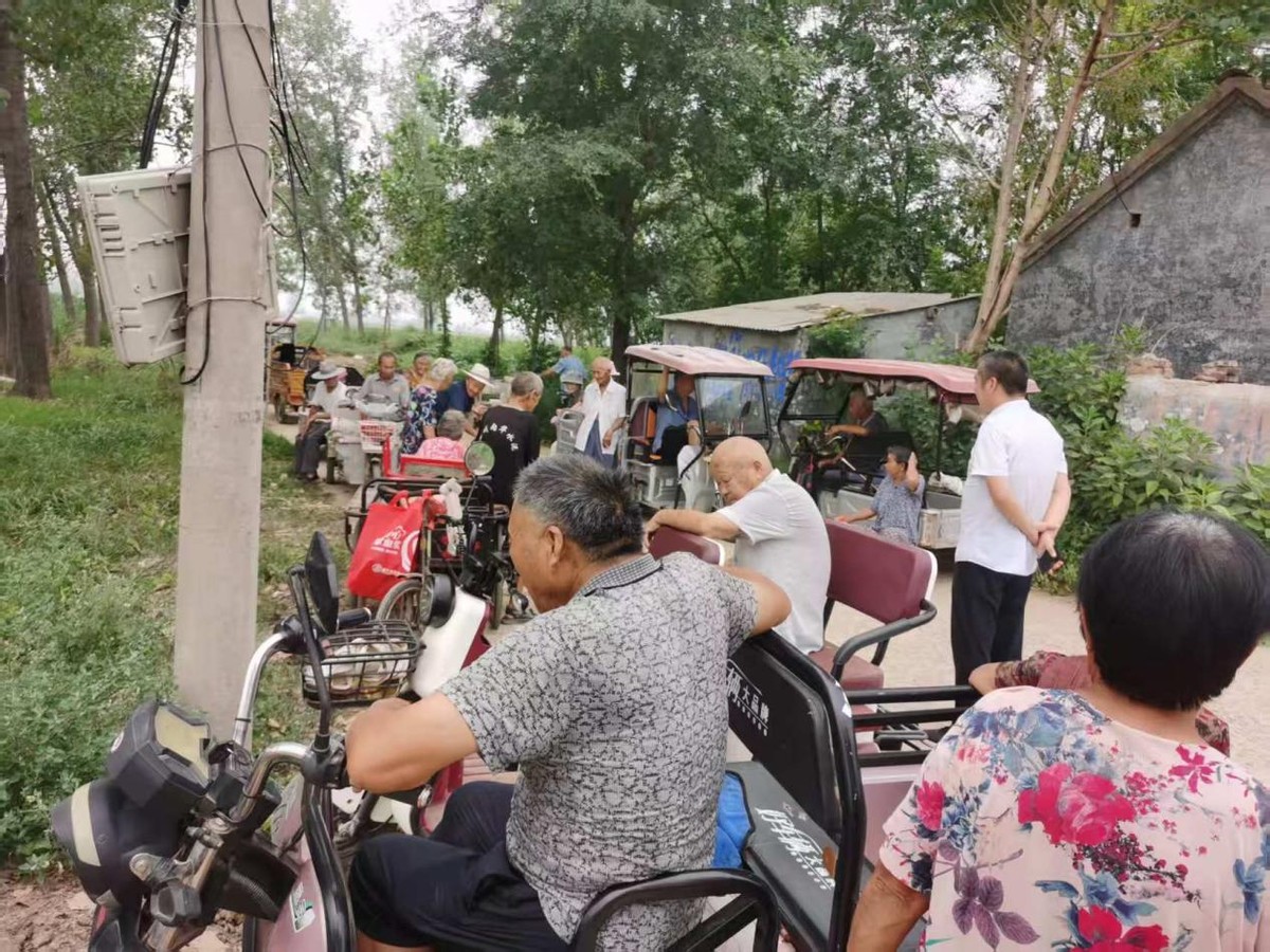 八月盛夏,以孝治家三支隊伍基層黨組織組長李平軍書記正帶着義工們,和在大食堂就餐的老人們圍坐在食堂門口的小樹林裏嘮家常。微風輕拂過每個人的臉龐,人羣中不時傳出老人們爽朗的笑聲;不遠處的大食堂裏,油煙機的嗡鳴與義工們掄勺做飯的聲響交織在一起,斷斷續續飄進人們耳中。站在人羣裏面,我覺得自己應該做點什麼,於是就拿出手機,拍下了這張幸福具象化的照片。