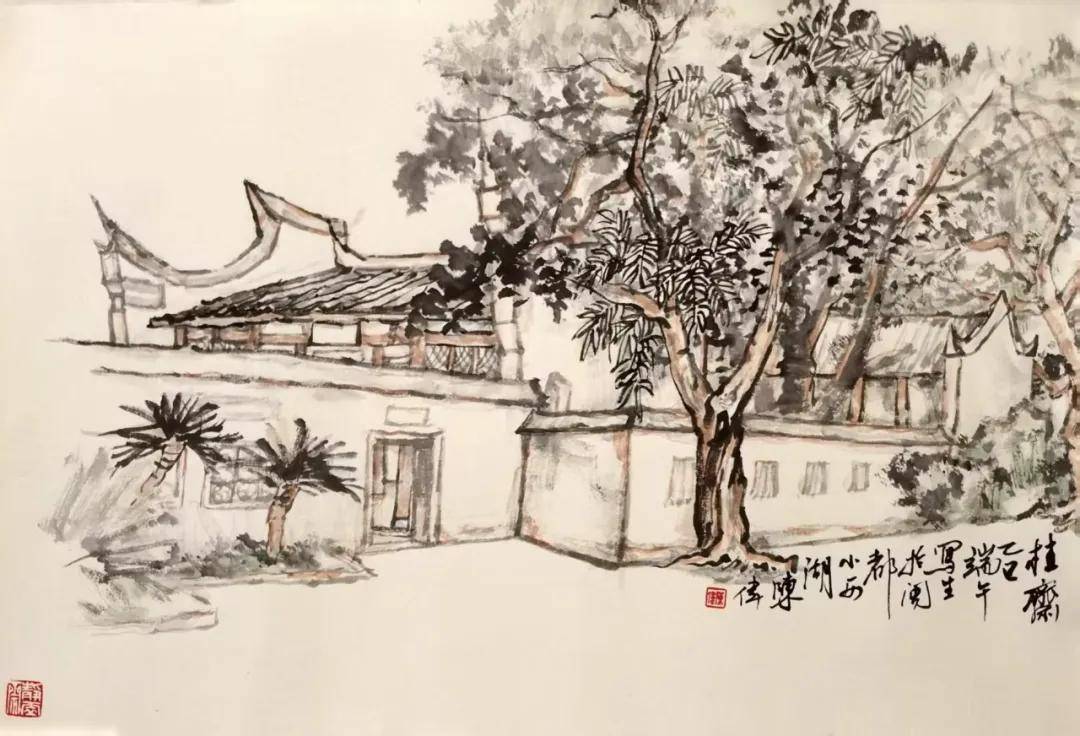 三、寫生現場:以淺絳山水為筆,繪遺芳幽處