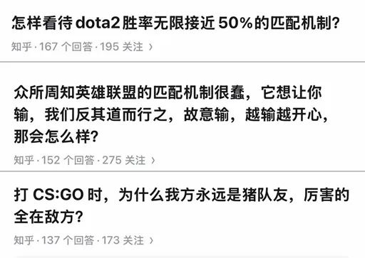 但於此同時,一個略顯矛盾的客觀事實是,幾乎所有市面上主流PVP產品的玩家都對自家的匹配機制表示不滿意。